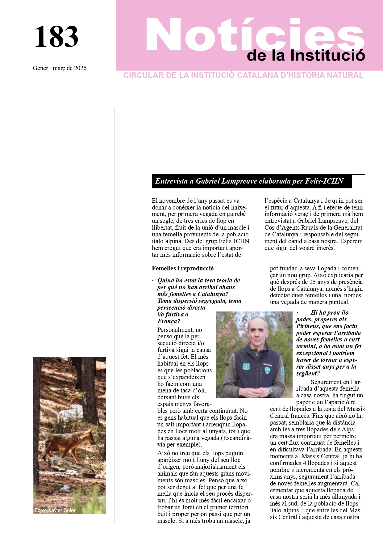 En el volum 89 del Butlletí de la ICHN, publicat el 31 de desembre de 2025, hi han participat 83 autors amb un total de 28 treballs científics que ocupen 252 pàgines repartides amb 16 treballs de zoologia (15 d’entomologia i un de mol·lusc), 10 de botànica i tres...