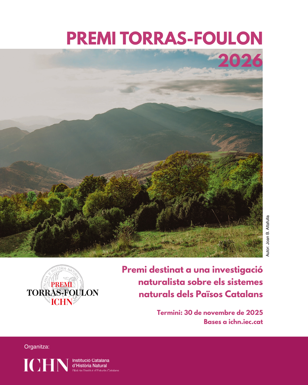 Enguany és la 7a edició del premi, gestionat per la ICHN gràcies a la donació de la família Torras-Foulon, que es destina a una investigació naturalista sobre els sistemes naturals dels Països Catalans.